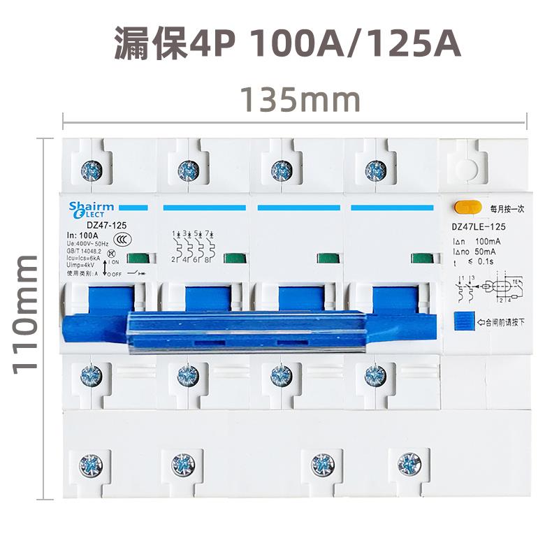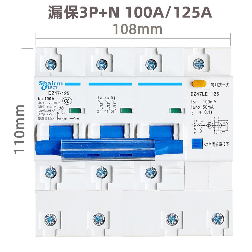 德力西空氣開關帶漏電保護器32a三相電空開總開2P63a漏保家用斷路