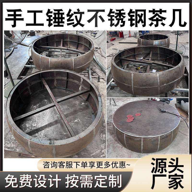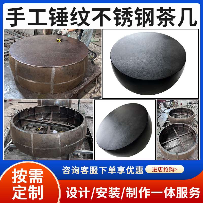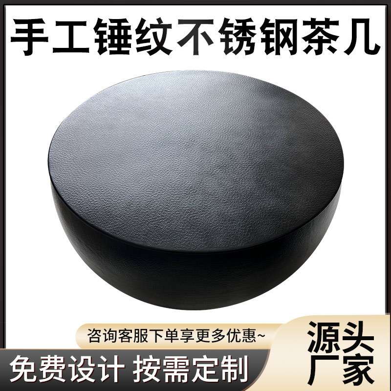 手工錘紋不銹鋼茶幾家用客廳極簡風不銹鋼可移動輕奢圓形小茶幾由