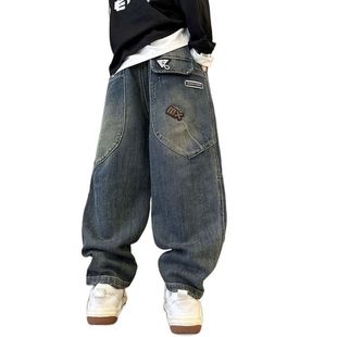 赫米童裝 兒童廓形彎刀不掉色牛仔褲 寬松闊腿長(zhǎng)褲 中大童 2025秋冬款