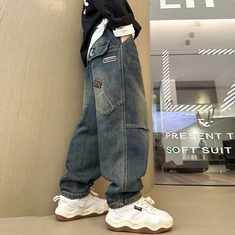兒童褲 多多家男童牛仔褲 2025新款 春秋款 子中大童直筒百搭洋氣長(zhǎng)褲