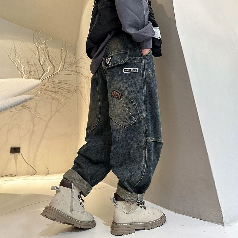 子寶寶長(zhǎng)褲 兒童秋冬牛仔褲 2025新款 中小童加絨加厚褲 洋氣百搭秋裝