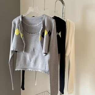 高級感針織衫 話里甜美氣質毛衣兩件套2025秋季 新款 免穿搭時尚 套裝