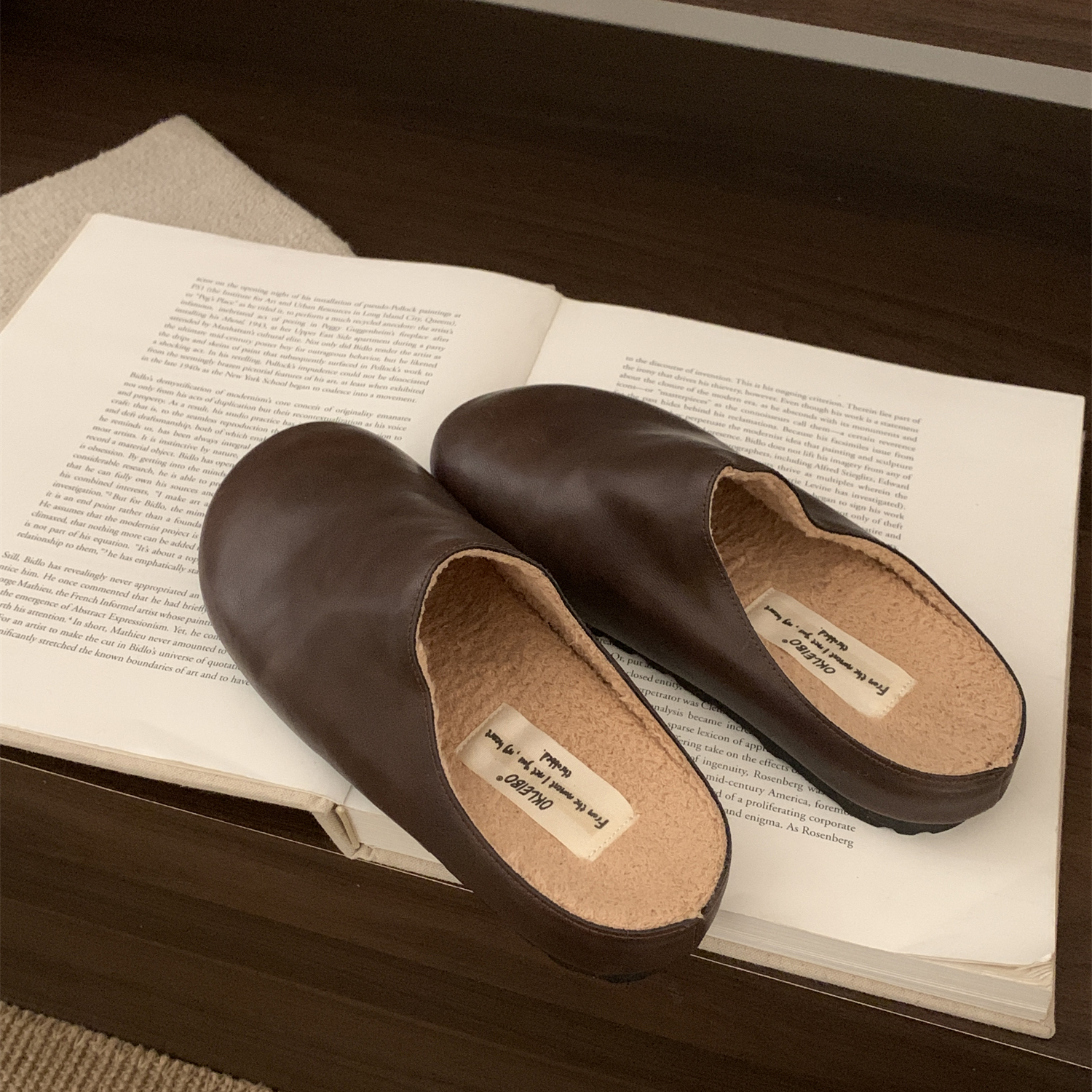 慵懶時(shí)尚 女外穿新款 復(fù)古氣質(zhì)休閑懶人厚底穆勒單鞋 小眾包頭半拖鞋由