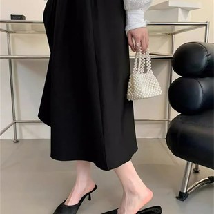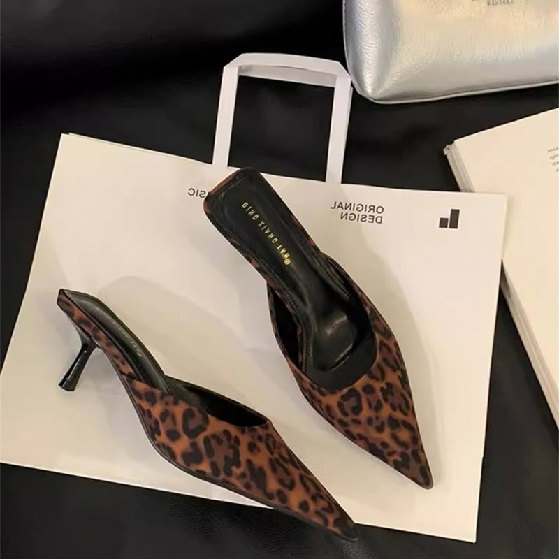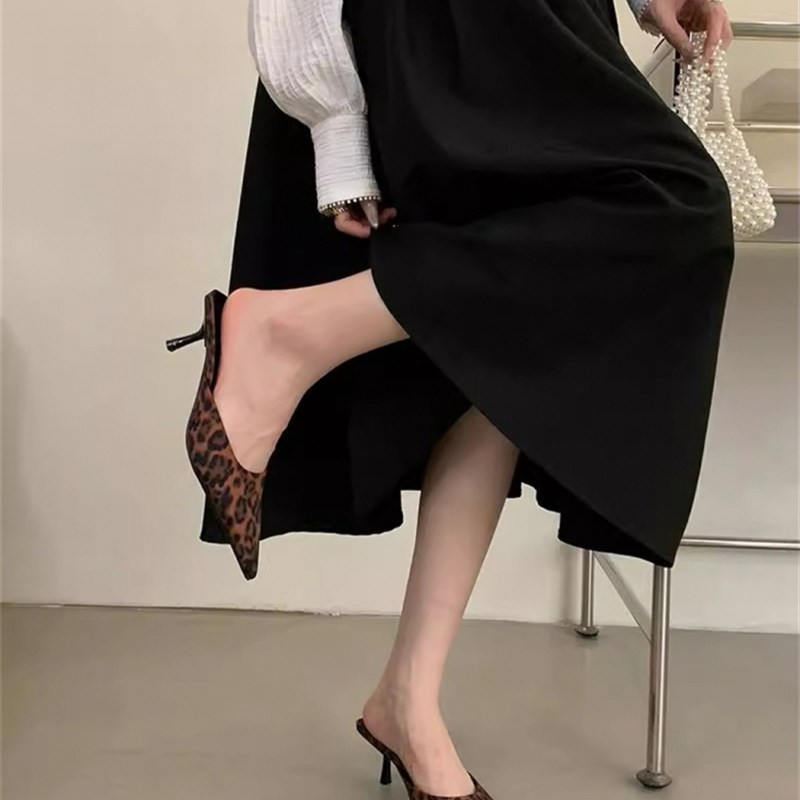 尖頭細跟黑色高跟涼拖鞋 女外穿2025夏新款 香港氣質通勤包頭半拖鞋由