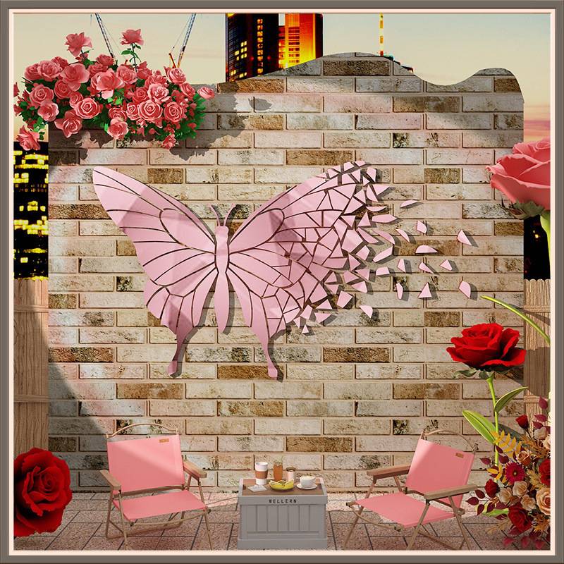 飾布置網(wǎng)紅臥室出租屋小房間改造用品自粘工廠直 蝴蝶陽(yáng)臺(tái)墻鏡面裝由