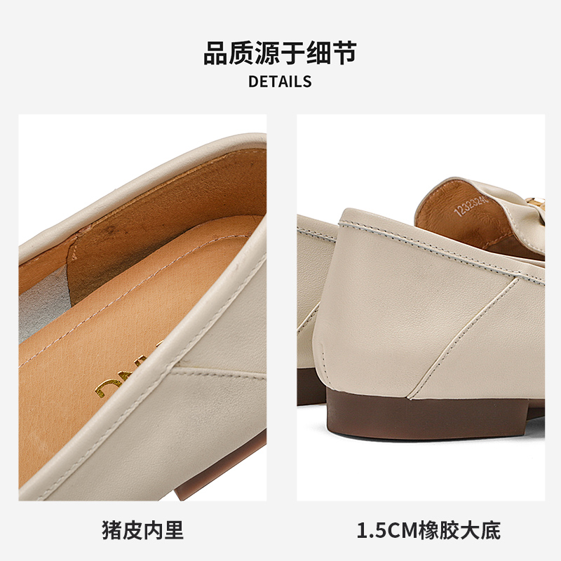 豆豆媽媽小皮鞋 達芙妮樂福鞋 軟皮夏季 平底女鞋 女2025新款 真皮單鞋