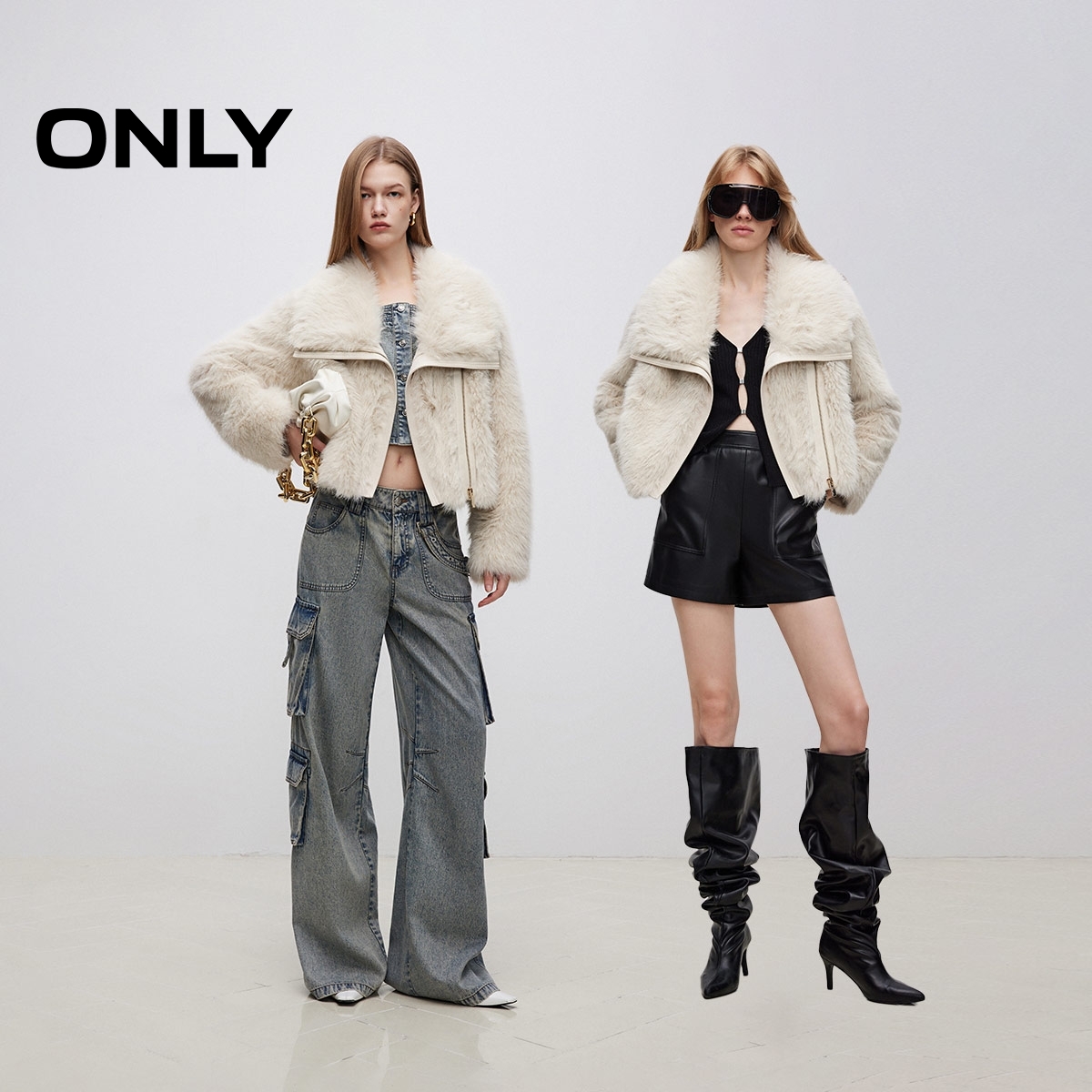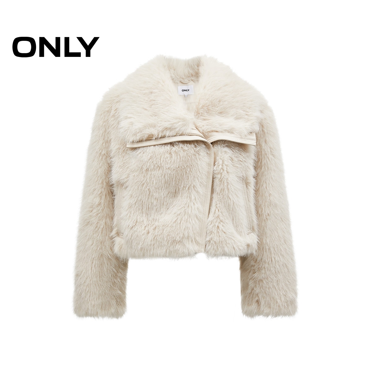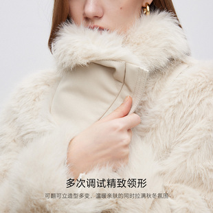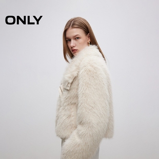 氣質百搭純色設計保暖翻領短款 環保皮草外套女 新款 ONLY2025秋季由