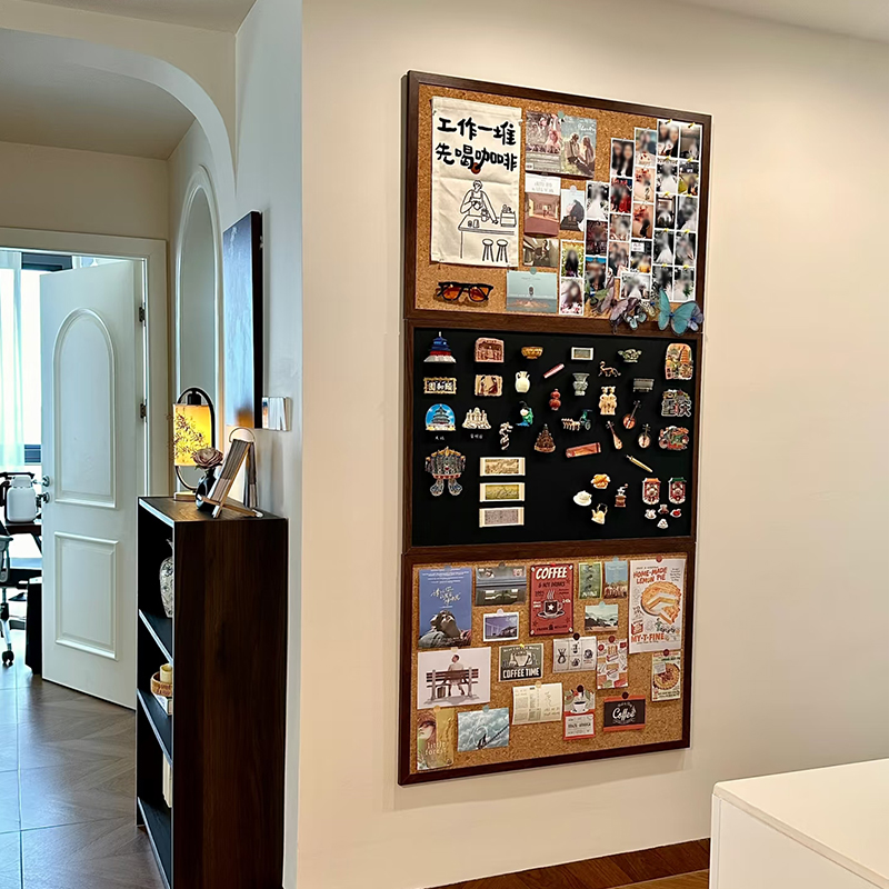 貝來云極復古黑板軟木板組合照片墻客廳創意diy背景板磁吸冰箱貼收納展示板高級感客廳相片展示墻 brandland由