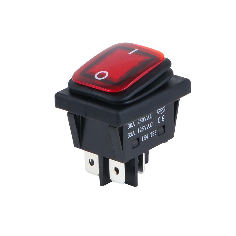 KCD4防水船型開關30A大電流4腳2檔翹板開關紅色帶燈KCD2 21N由