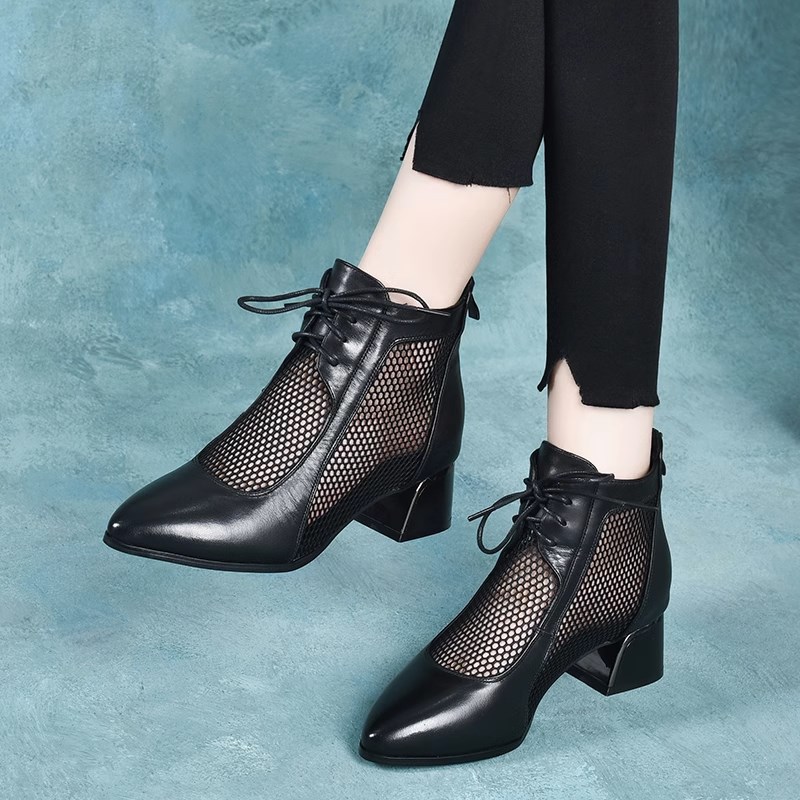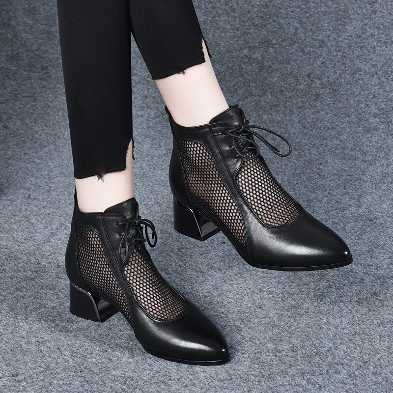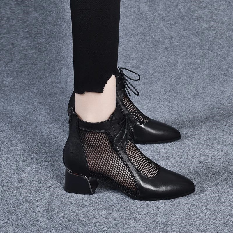 包頭桐鄉明哥涼鞋 涼靴 網鞋 現貨速發粗跟鏤空網靴202尖頭中跟單鞋由
