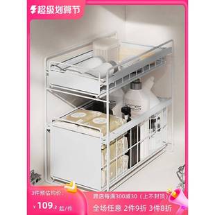 收納架桌鐵藝?yán)@分架層F759 6B76廚房下水槽置物架面櫥物柜抽拉式由