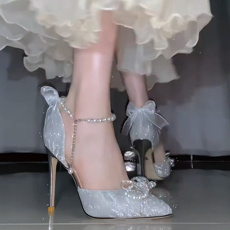 水晶婚鞋 銀色高跟鞋 女細(xì)跟2025新款 18歲成年禮服婚紗伴娘鞋 新娘鞋由
