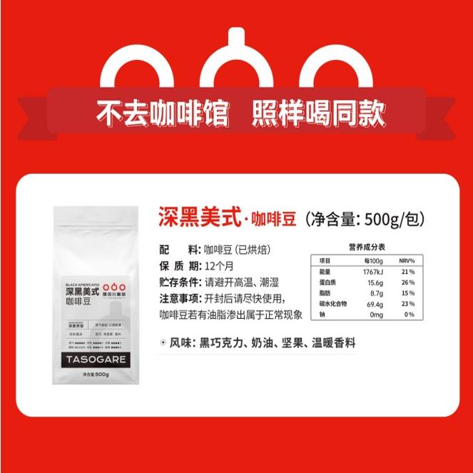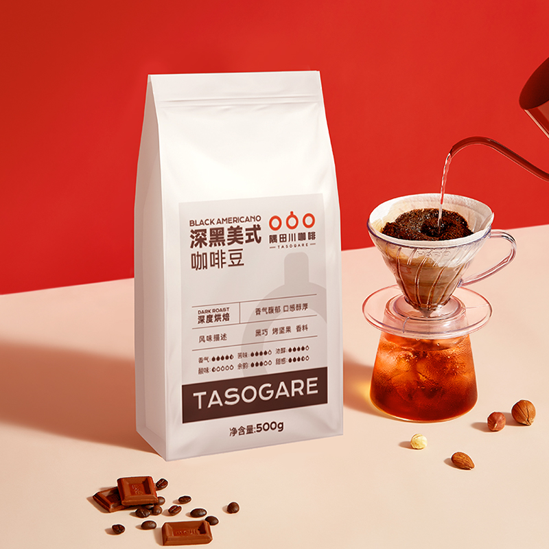 隅田川深黑美式 袋 風味咖啡豆深烘手沖現(xiàn)磨油脂豐富黑咖啡500g由