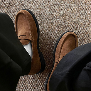 子豆豆鞋 MRA樂福鞋 秋 一腳蹬潮鞋 反絨老錢風休閑皮鞋 男款 2025新款由