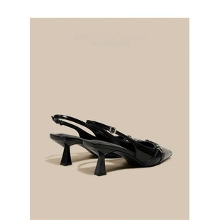 性感氣質(zhì)百搭漆皮尖頭馬蹄跟一字帶后空包頭涼鞋 高跟鞋 楊樹林同款