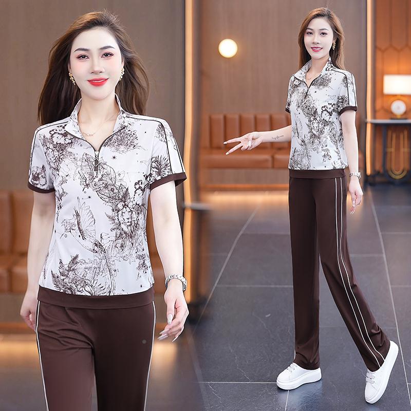 印薄花款 運9049566動套裝 女夏新款 時尚 閑跑步服兩氣件 透冰絲休季由