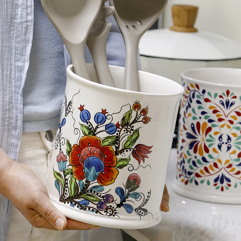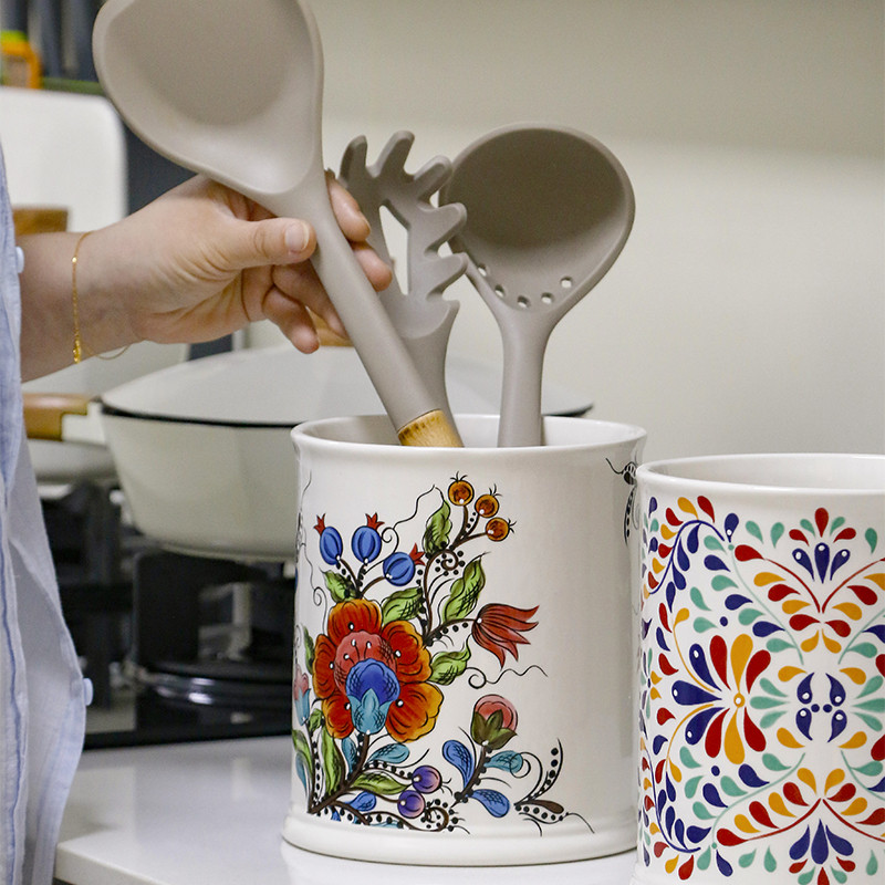 OMK 彩繪陶瓷收納罐創(chuàng)意家用廚房勺鏟收納筒烘焙工具儲(chǔ)物罐 美式由