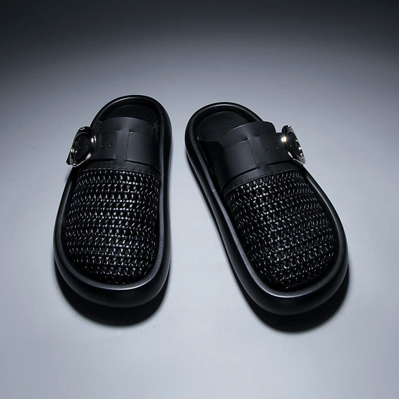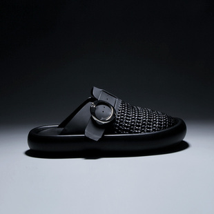 歐洲站男鞋 鏤空透氣包頭半拖皮帶扣勃肯鞋 休閑厚底拖鞋 男 2025夏款由
