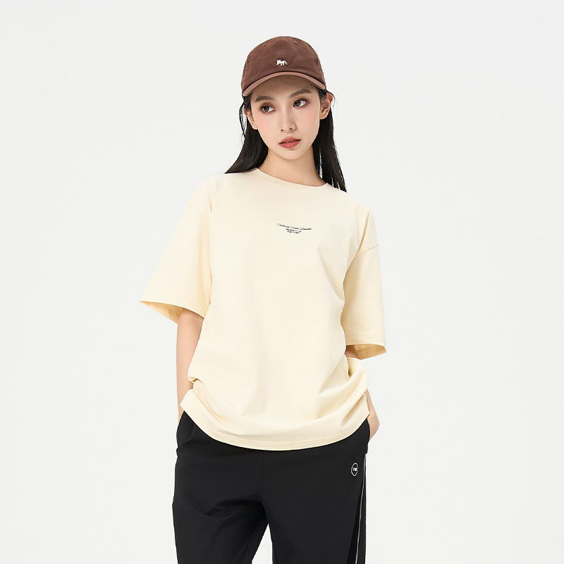 安踏短袖 夏季 簡約純色圓領半袖 寬松透氣情侶休閑上衣 t恤男女同款