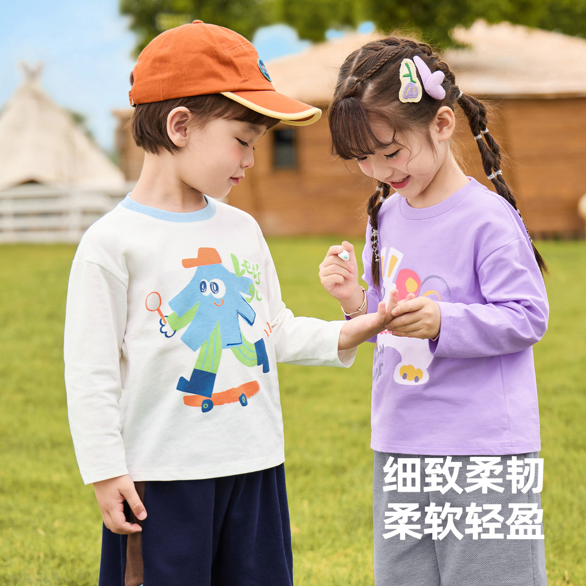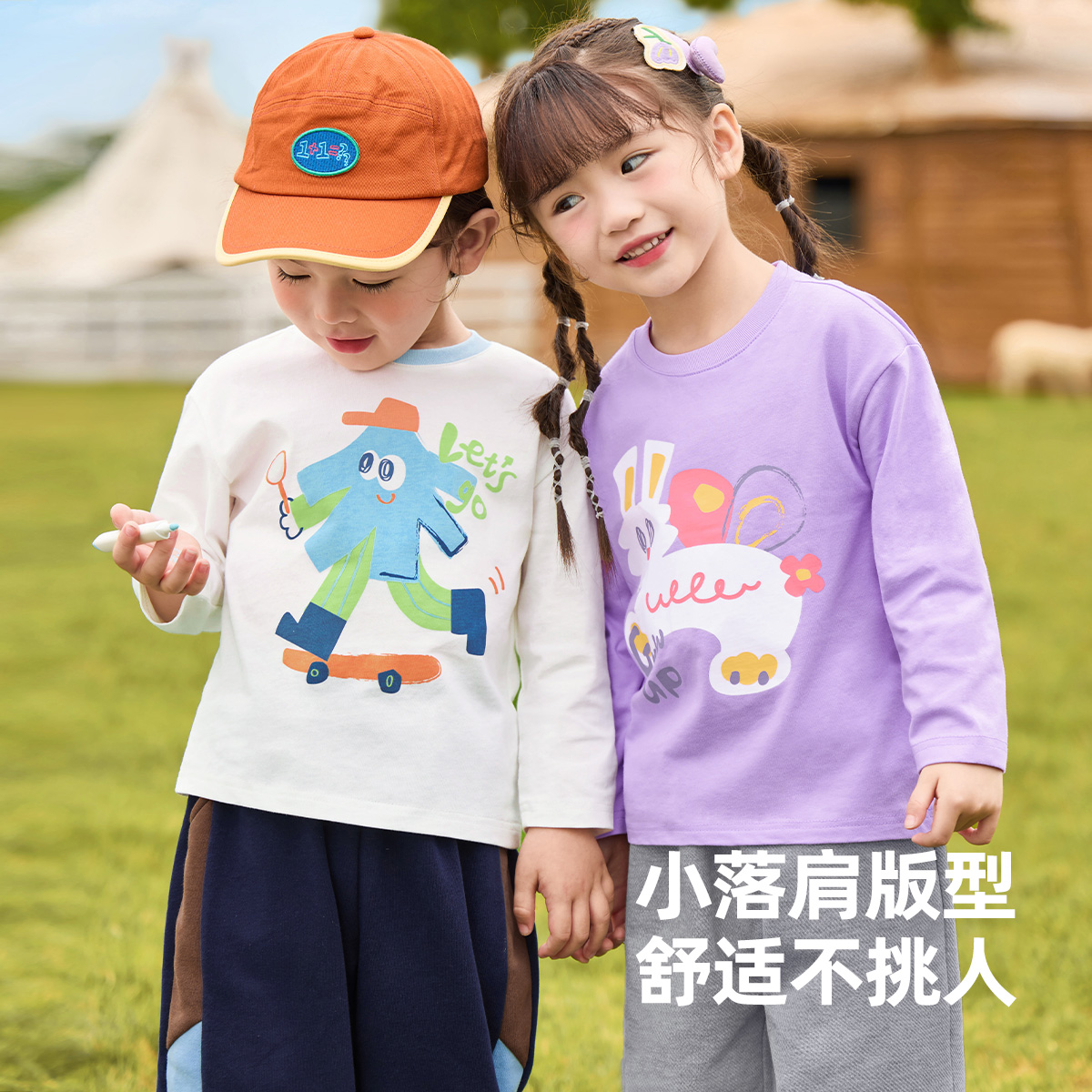迷你巴拉巴拉男童女寶兒童長袖 T恤純棉嬰兒寶寶2025秋新品 糯米T