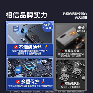 倍思車載逆變器大功率12v轉220v汽車電源點煙器轉換插頭快充電器
