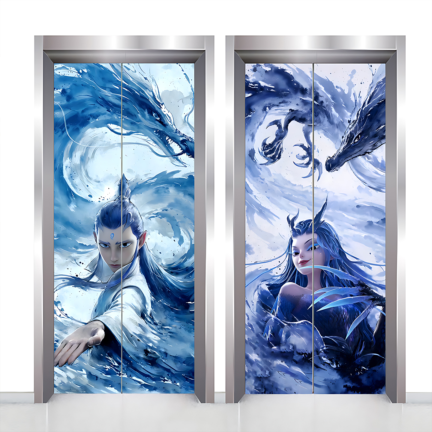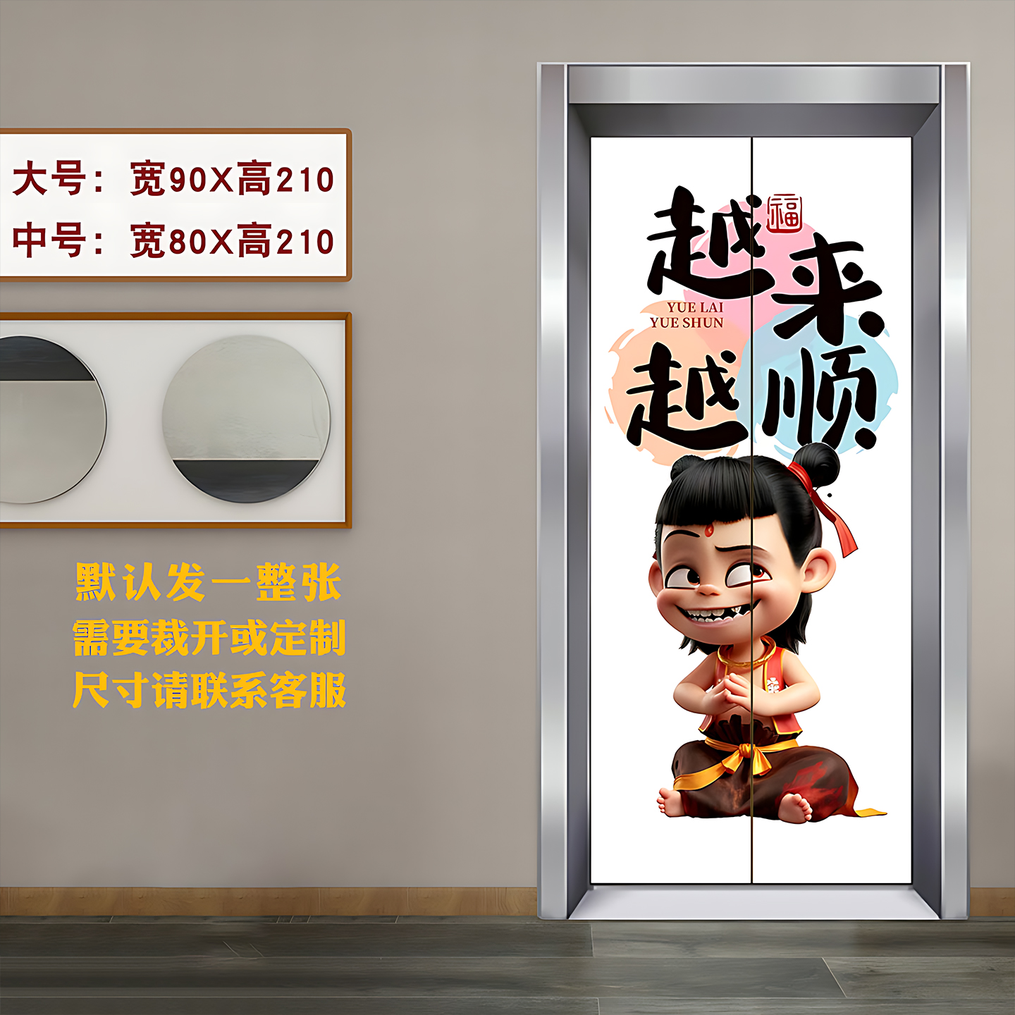 飾改造貼畫 定制哪吒入戶電梯門貼紙壁紙卡通結界獸一梯一戶電梯裝由
