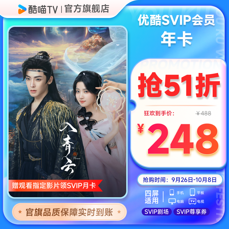 優酷SVIP會員年卡12個月支持電視TV端酷喵會員由