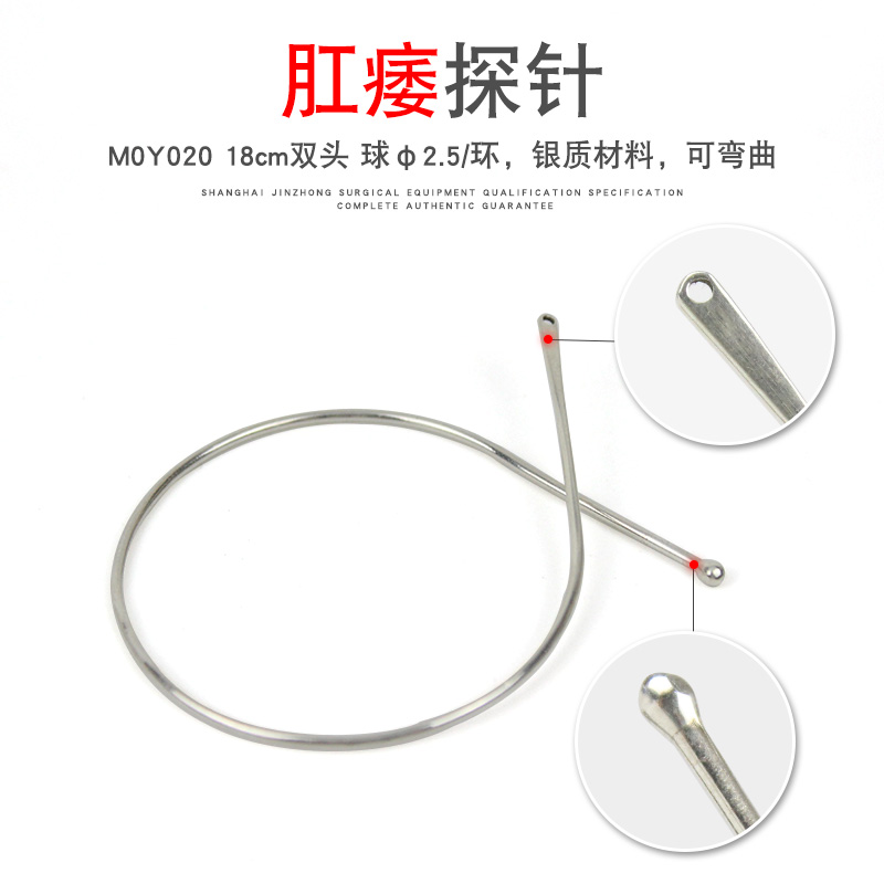 上海金鐘不銹鋼醫(yī)用肛瘺探針痔漏檢查刺探針銀質雙球頭肛門探針由