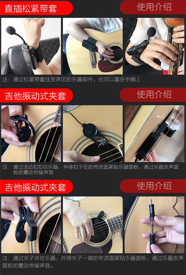 通用拾音器古典吉他尤克里里古箏中阮琵琶大小提琴免開孔擴音配件