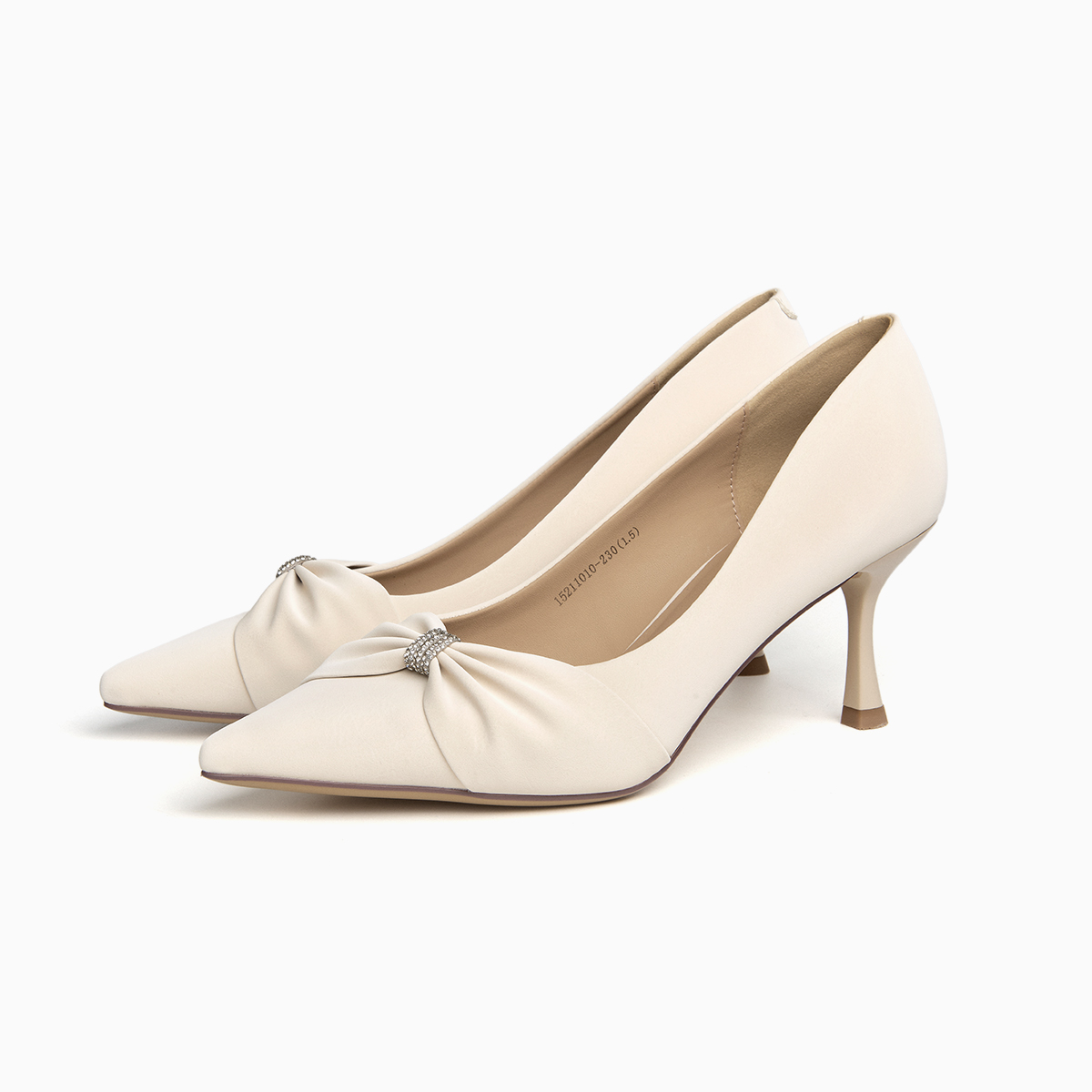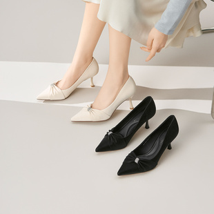 千百度裸色細(xì)高跟鞋 淺口氣質(zhì)通勤單鞋 女真皮不累腳 靜音系列