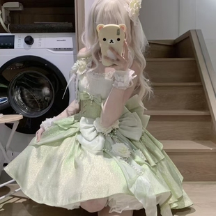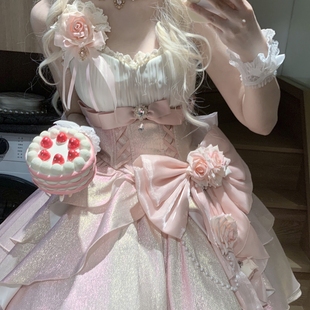 現貨掉落 玫瑰心結jsk公主裙小花嫁Lolita蜜桃白茶原創設計由