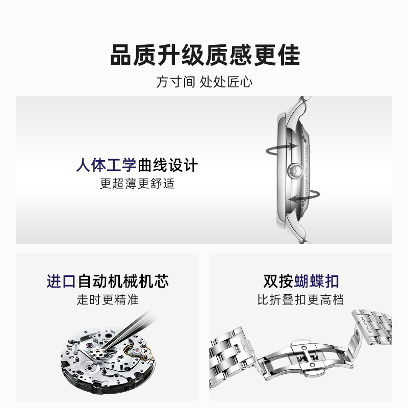 防水機械表全自動鋼帶潮超薄品牌商務男國產(chǎn)腕表石英 瑞士手表男士