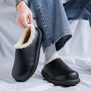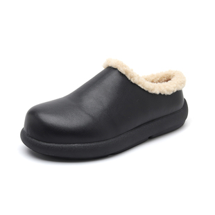 黑色加絨勃肯鞋 小土豆皮面雪地靴包頭半拖鞋 情侶毛毛棉鞋 男女冬季由