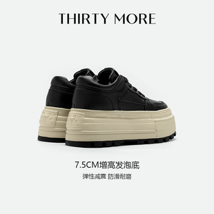牛皮革黑色休閑鞋 Thirty More板鞋 女2025秋冬新款 增高厚底運動鞋由
