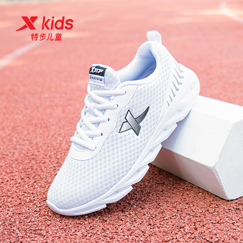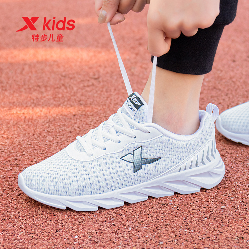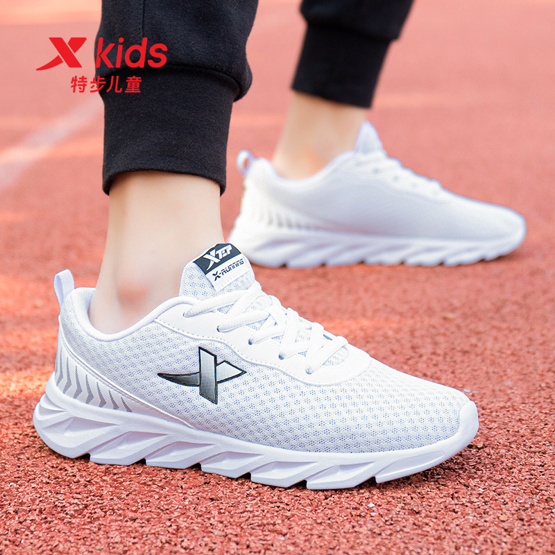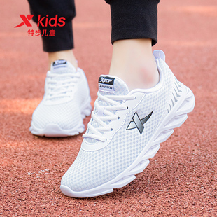 特步兒童小白鞋 白色運動鞋 女童大童輕便網面跑鞋 小學生 男童跑步鞋由