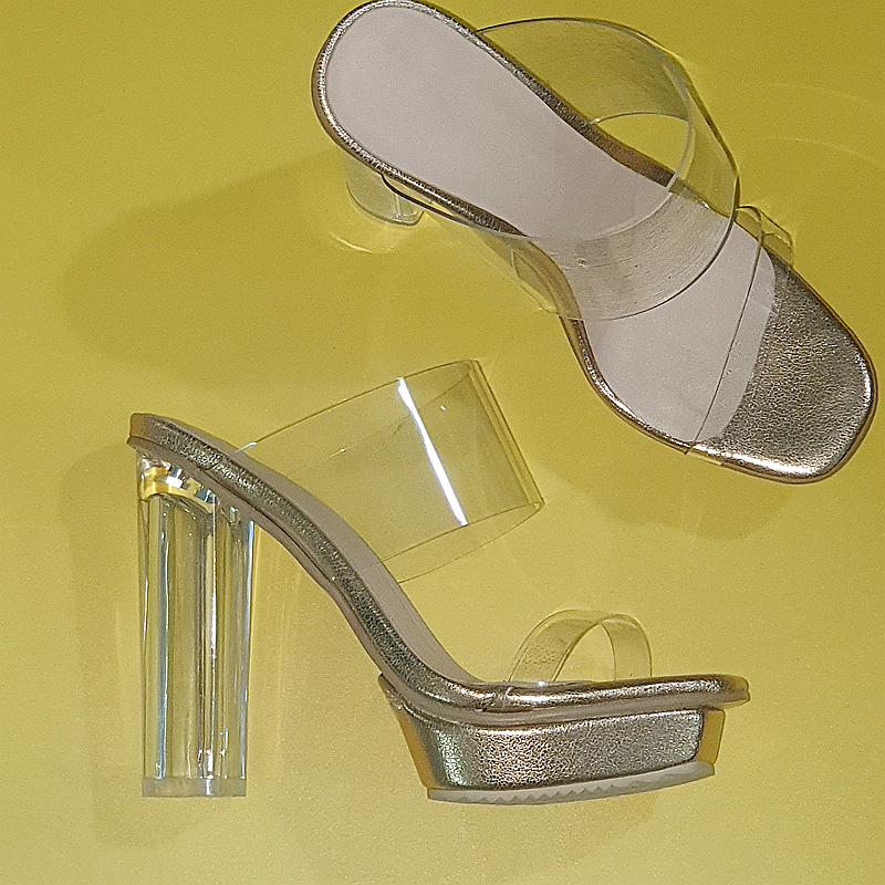 粗跟防水臺裸色透明高跟拖鞋 方頭 女外穿露趾透氣涼拖百搭室外夏季由