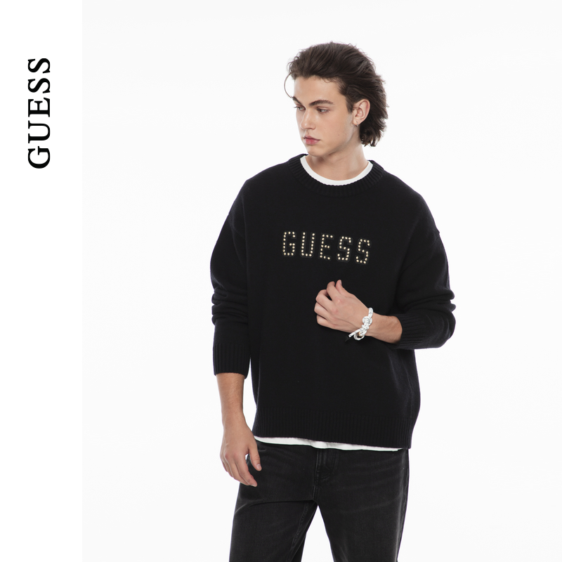 GUESS男士 M4PR71Z0W90 休閑鑲鉆logo設計羊毛毛衣由