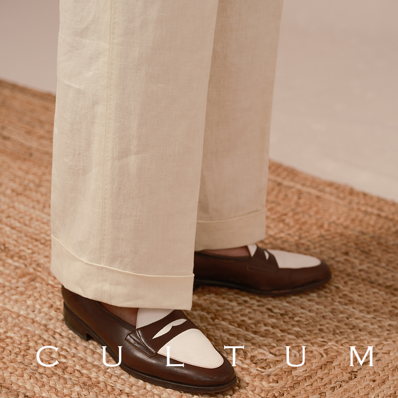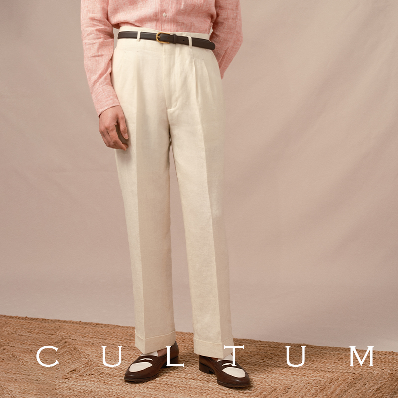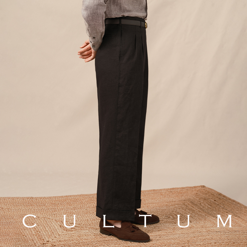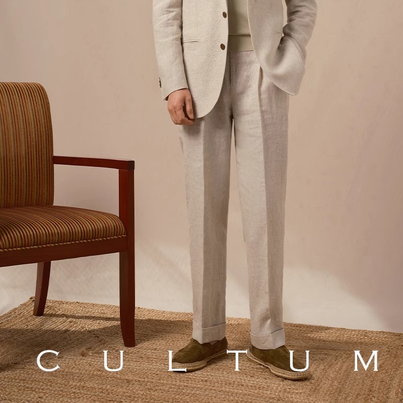 男士 重磅法國亞麻 CULTUM好萊塢西褲 重磅雙褶高腰直筒休閑褲 款由