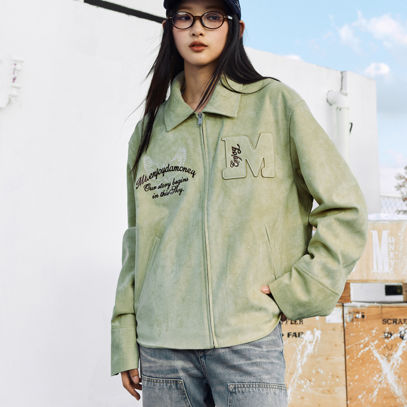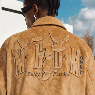MEDM貼皮繡鴿子麂皮絨夾克男春秋美式 休閑翻領(lǐng)外套 侯明昊同款由