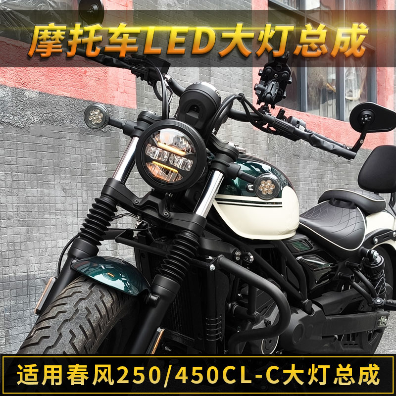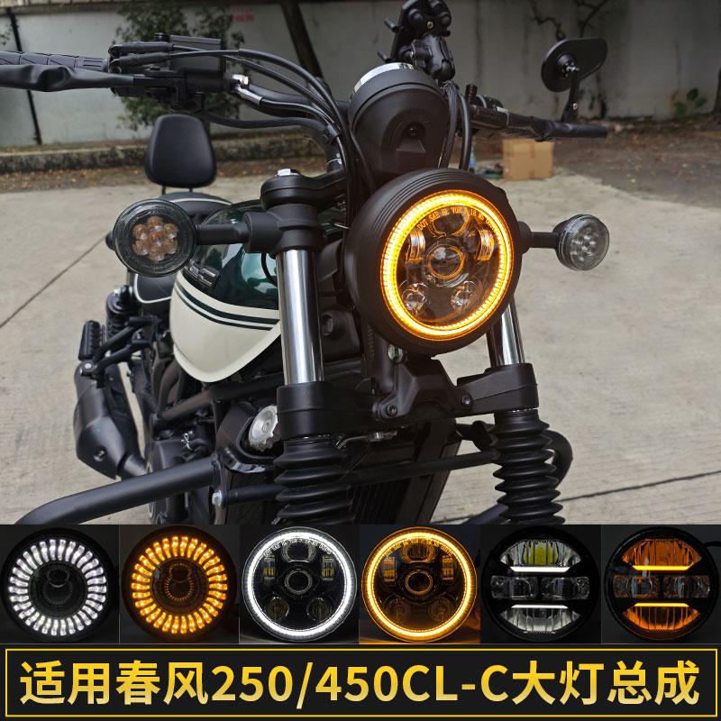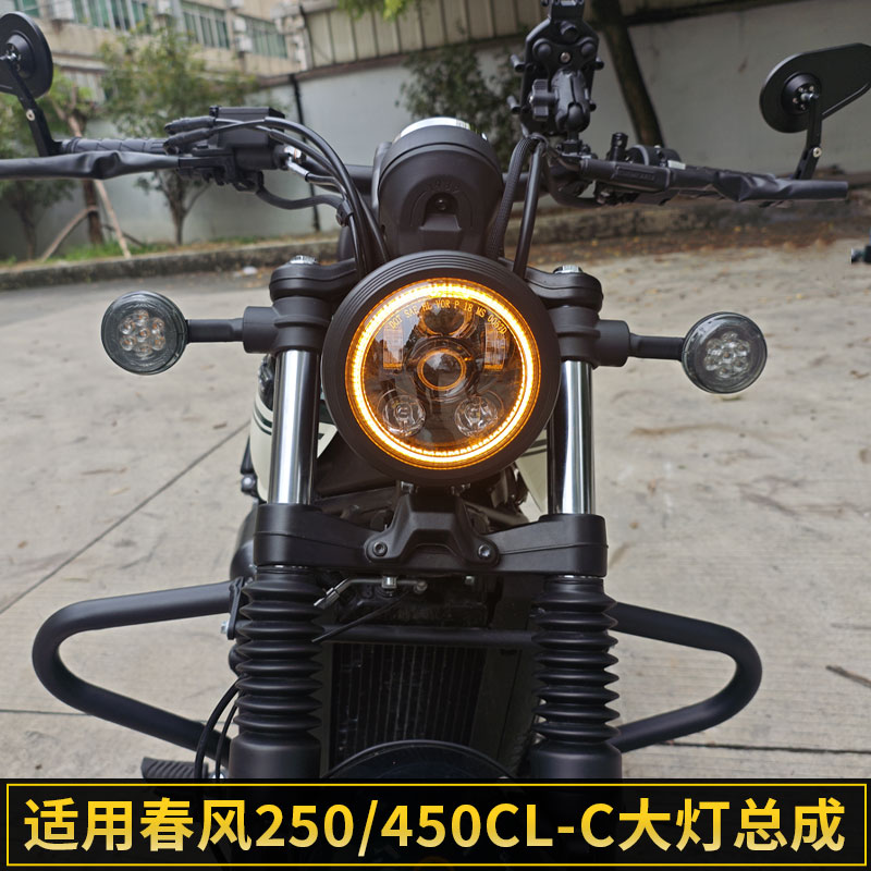適用春風(fēng)CLC450大燈總成CLC250改裝 前燈罩配件 LED天使眼無損安裝由