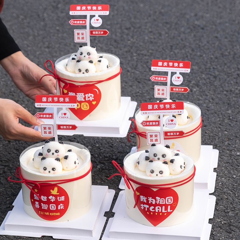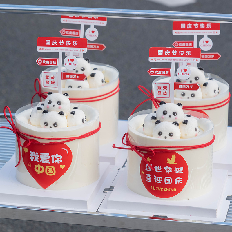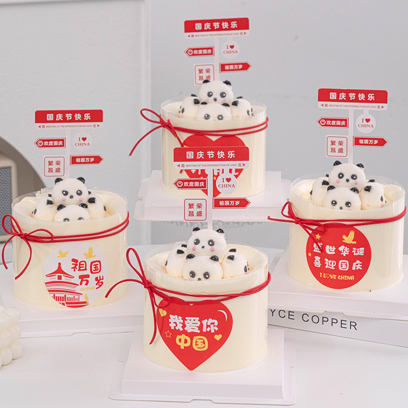飾熊貓棉花糖我愛祖國貼紙節日路牌插件 2025國慶節堆堆樂蛋糕裝由