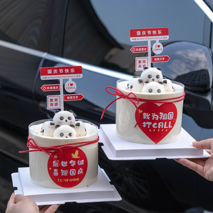 2025國慶節發光燈熊貓蛋糕裝 扮插件 飾祖國繁榮昌盛插牌節日烘焙裝