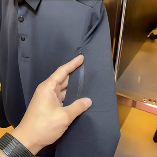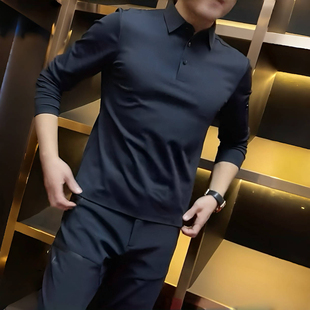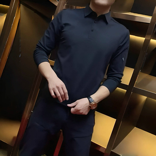 新款 長袖 t恤男polo衫 男2025年秋季 舒適氣質商務翻領純色翻領修身由