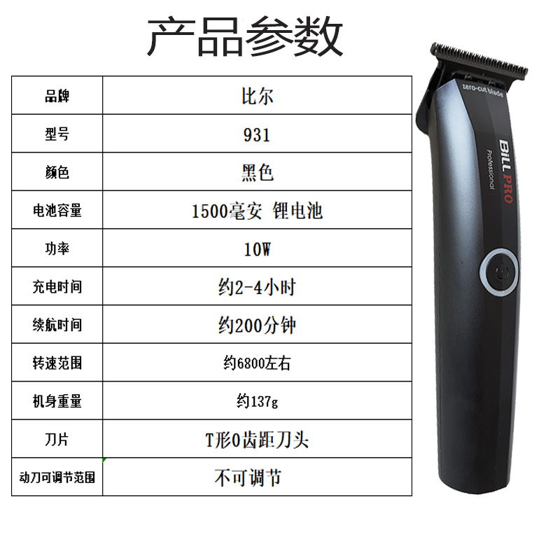 比爾931 剃白雕刻刻痕推光刮光頭小 951油頭電推剪理發(fā)器0刀頭男士由