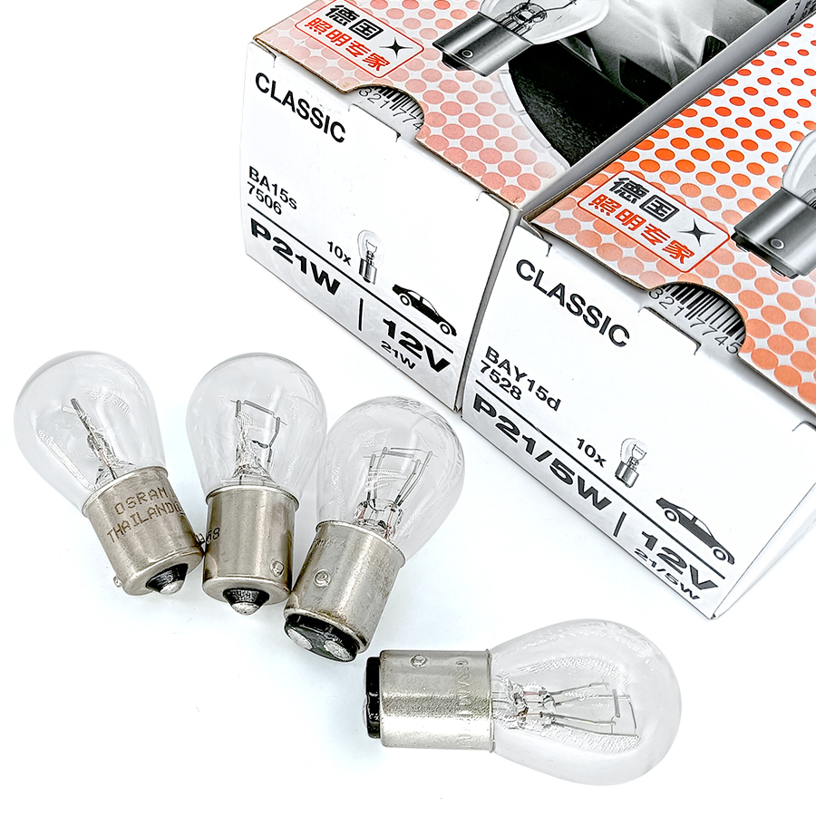 5W尾燈7506單絲平角P21W 歐司朗1157剎車(chē)燈7528雙絲高低腳P21由