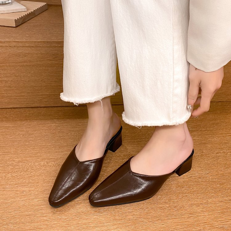 氣質(zhì)包頭拖鞋 外穿粗跟涼拖穆勒半拖銀色單鞋 配裙子高跟鞋 女夏新款由