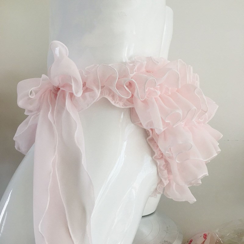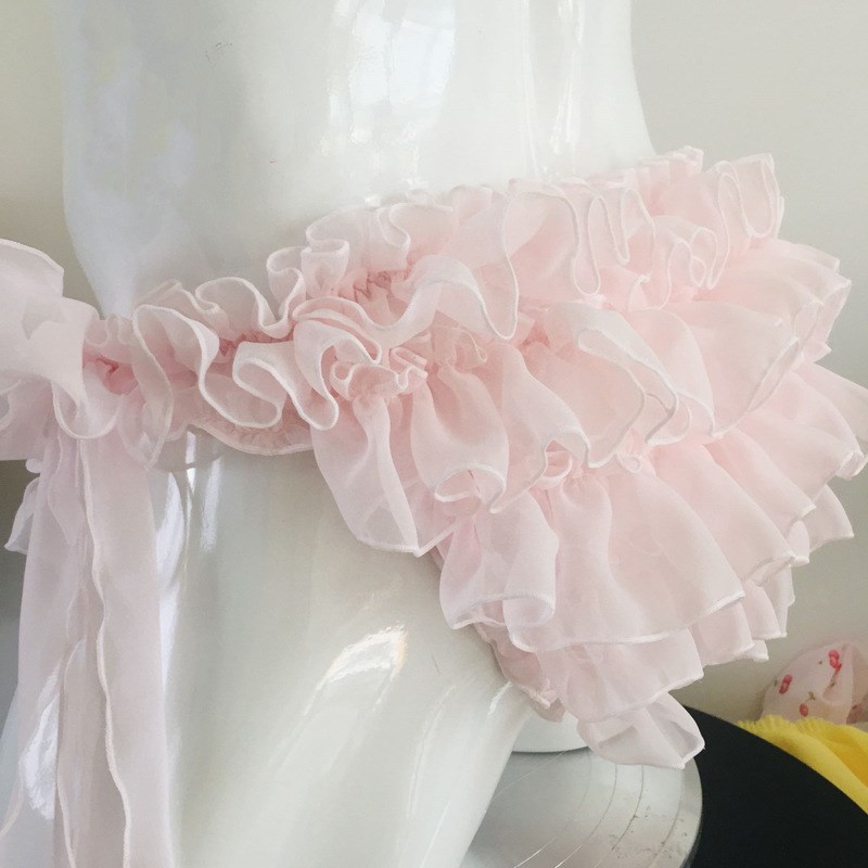 男體女款 性感飄飄粉色蛋糕多層雪紡雙側綁帶蝴蝶結木耳邊 內褲 男士由