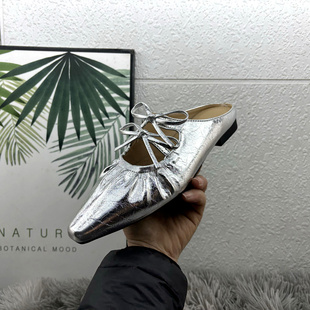外穿瑪麗珍鞋 金屬方頭平跟包頭半拖鞋 女2025春夏新款 軟底拖鞋 單鞋