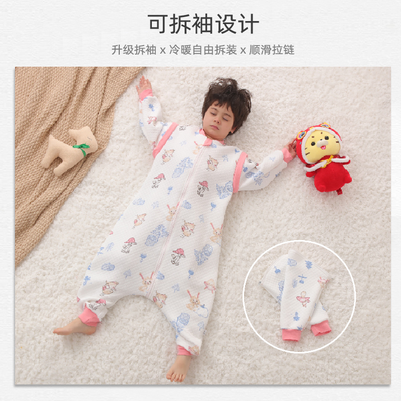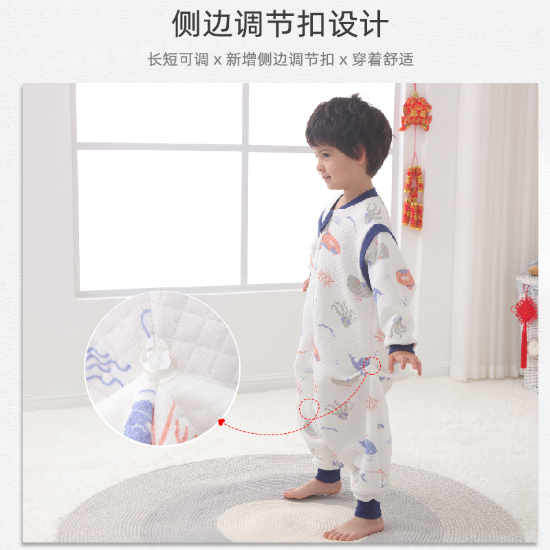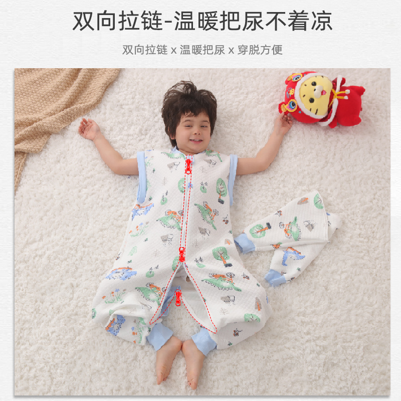 通用 嬰兒睡袋春秋薄棉兒童保暖三層空氣棉男女寶寶分腿睡袋四季由