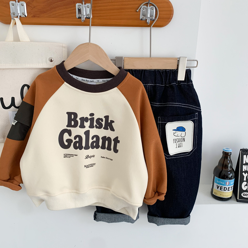 Oak 新品 兒童套頭衛衣絨衫 男女寶寶上衣拼接小眾洋氣 Family秋季